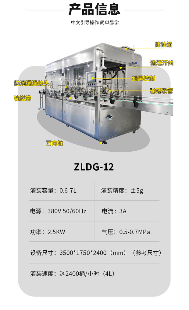 含高位罐,高頻多段灌裝速度隨意調(diào)整灌裝機(jī)操作程序優(yōu)化,可存儲(chǔ)40組以上的配方參數(shù)。