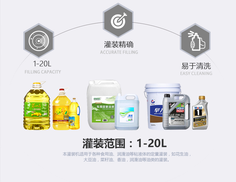 該系列的灌裝機(jī)采用流量計(jì)式計(jì)量灌裝原理,多項(xiàng)認(rèn)證,適用于各種規(guī)格(1-5升)的南瓜籽油、榛子油、牡丹籽油、芝麻油、核桃油、山茶油、亞麻籽油、棉籽油、橄欖油、大豆油、玉米油、菜籽油等食用油灌裝。設(shè)備采用高精的旋轉(zhuǎn)編碼器計(jì)量,保證了1%o的灌裝精度,在保證灌裝精度的同時(shí),提高了20%-35%的灌裝速度,操作簡(jiǎn)單,維護(hù)方便,節(jié)省人工成本,生產(chǎn)效率更高。
