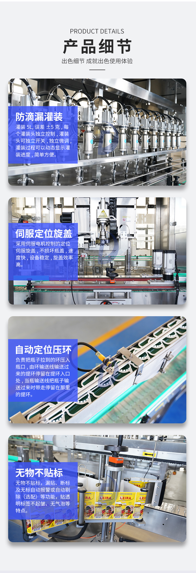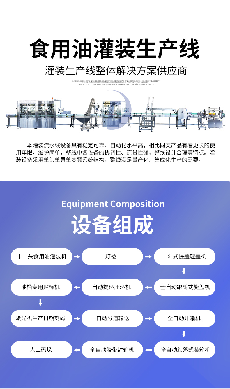 當油桶移動到灌裝頭下方時,灌裝頭會自動啟動,開始進行自動灌裝。在這個過程中,灌裝頭會感應(yīng)油桶的存在,并根據(jù)設(shè)定好的參數(shù)自動進行灌裝。當油桶已經(jīng)達到預(yù)定容量后,灌裝頭會自動關(guān)閉,停止灌裝。